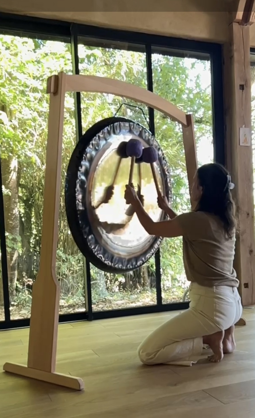 « Un immense merci à Fanny, notre yogiste lumineuse, qui a su créer un espace de confiance et de lâcher-prise. Grâce à elle, j’ai découvert le bain sonore au gong, une expérience unique, enveloppante, presque mystique… J’en redemande ! »